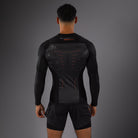 The Venum Technical 3.0 Long Sleeve Rashguard in Graphite is a compressive long sleeve rashguard featuring a sleek futuristic design in graphite grey and black, with the Venum logo at the chest.